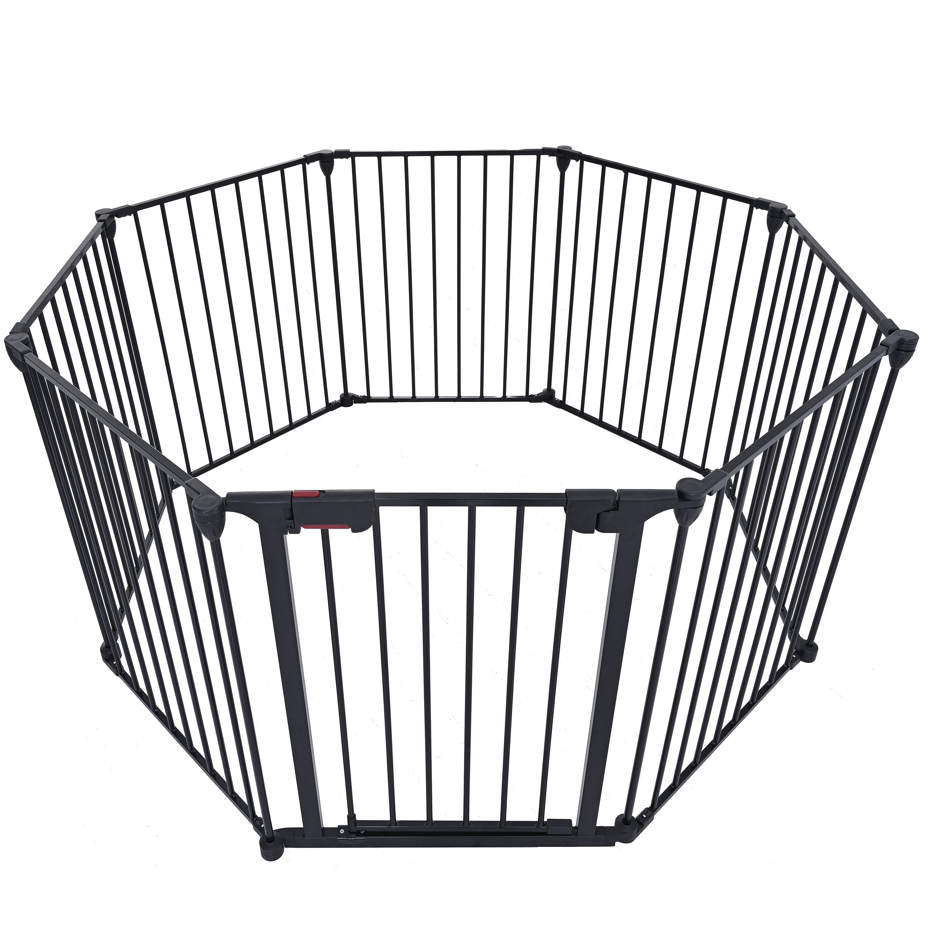 4-IN-1METAL SAFETY GATE: 1. Pet Gate - It can be used as a freestanding pet gate when you set it up as a circular enclosure; 2. Safety Fence - Suitable to use around fireplaces, grills, wood burning stoves, Christmas tree, etc. 3. Play yard: Set up sectioned off areas in your home for your toddlers or pets; 4. Barrier: Solid construction make this a great option for creating room dividers; 5. Baby Gate - Great for wide spaces, angled openings, hallway, doorway or bottom of stairs